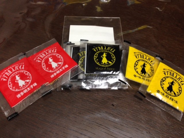 赤いのが博多明太子味、黄色が香味麻辣味です。